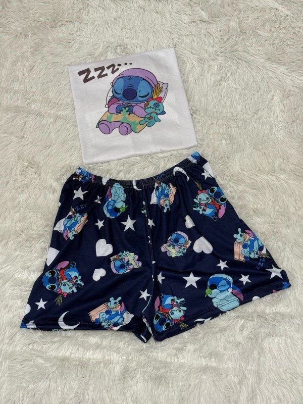 Pijama animado corto + remera manga corta - Stitch Durmiendo