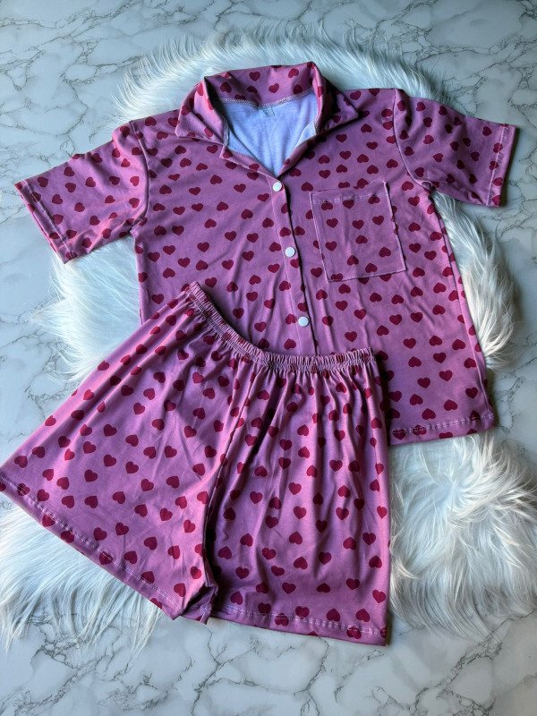 Pijama camisero animado modal soft - Rosa Corazones Rojo
