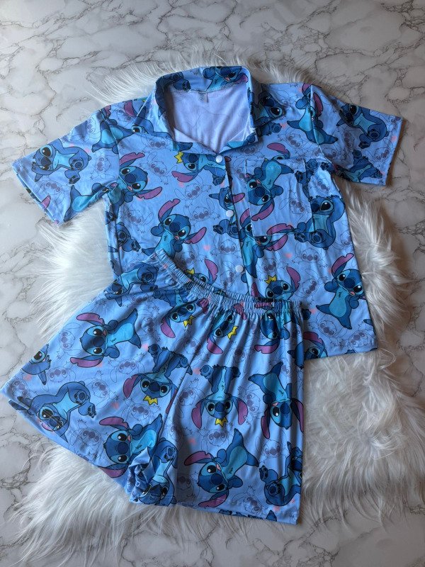 Pijama camisero animado modal soft - Stitch Celeste Nuevo