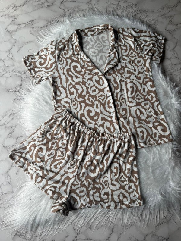 Pijama camisero animado - Print Beige Nuevo