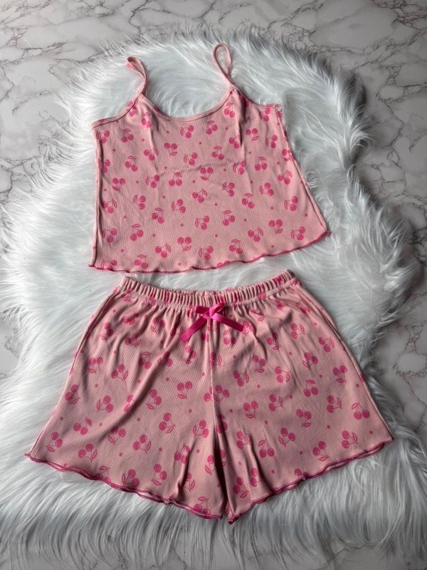 Pijama de morley PREMIUM short + top - Cerezas Salmon