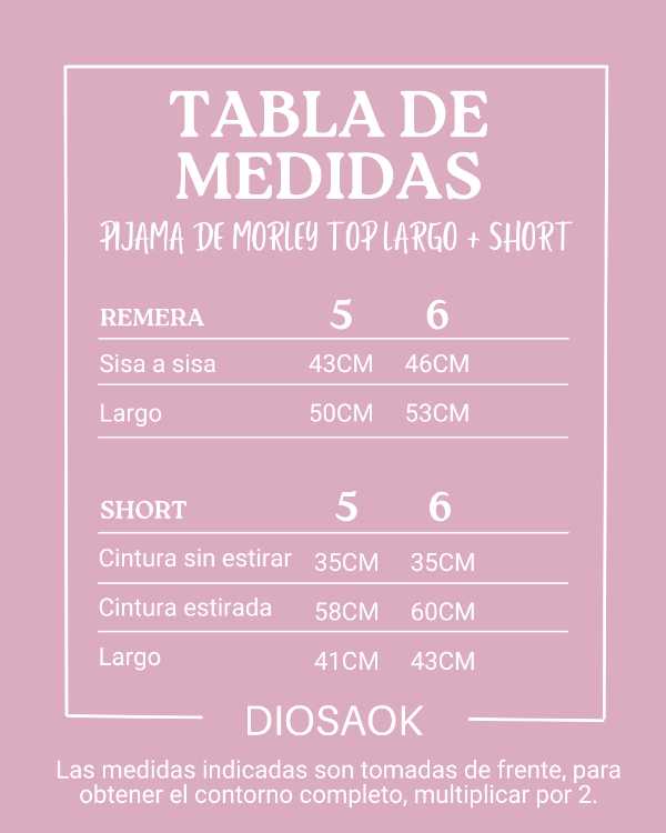 ℹ️ Las medidas son tomadas de frente; para obtener el contorno completo, multiplicar por 2.