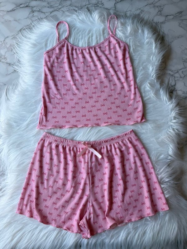 Pijama de morley PREMIUM short + top - Moños Rosas